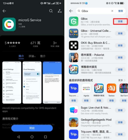 步驟一:通過AppGallery或可信來源下載MicroG和GBox